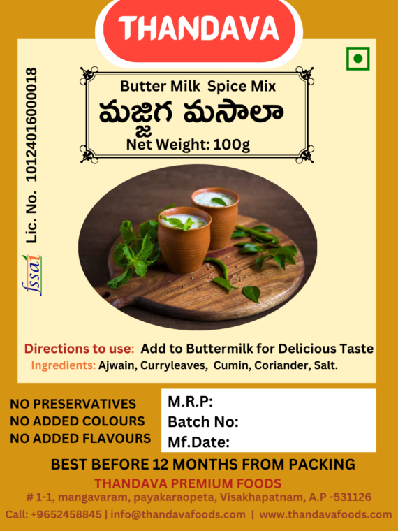 Buttermilk Masala Mix is a quick and delicious way to prepare spiced buttermilk—an age-old Indian beverage cherished for its cooling and digestive benefits. This mix is expertly crafted from roasted cumin, coriander, dry ginger, black salt, curry leaves, and mild spices that give buttermilk a savory and tangy twist. Just stir a spoonful into chilled buttermilk for an instant refreshment that’s both tasty and gut-friendly. It’s ideal after meals, during hot weather, or as a healthy substitute for sugary drinks. Beyond its refreshing taste, this mix supports digestion, reduces acidity, and helps balance body heat naturally. It brings the comfort of home-style buttermilk into your glass in seconds, making it a kitchen essential for anyone who values flavor, tradition, and wellness.